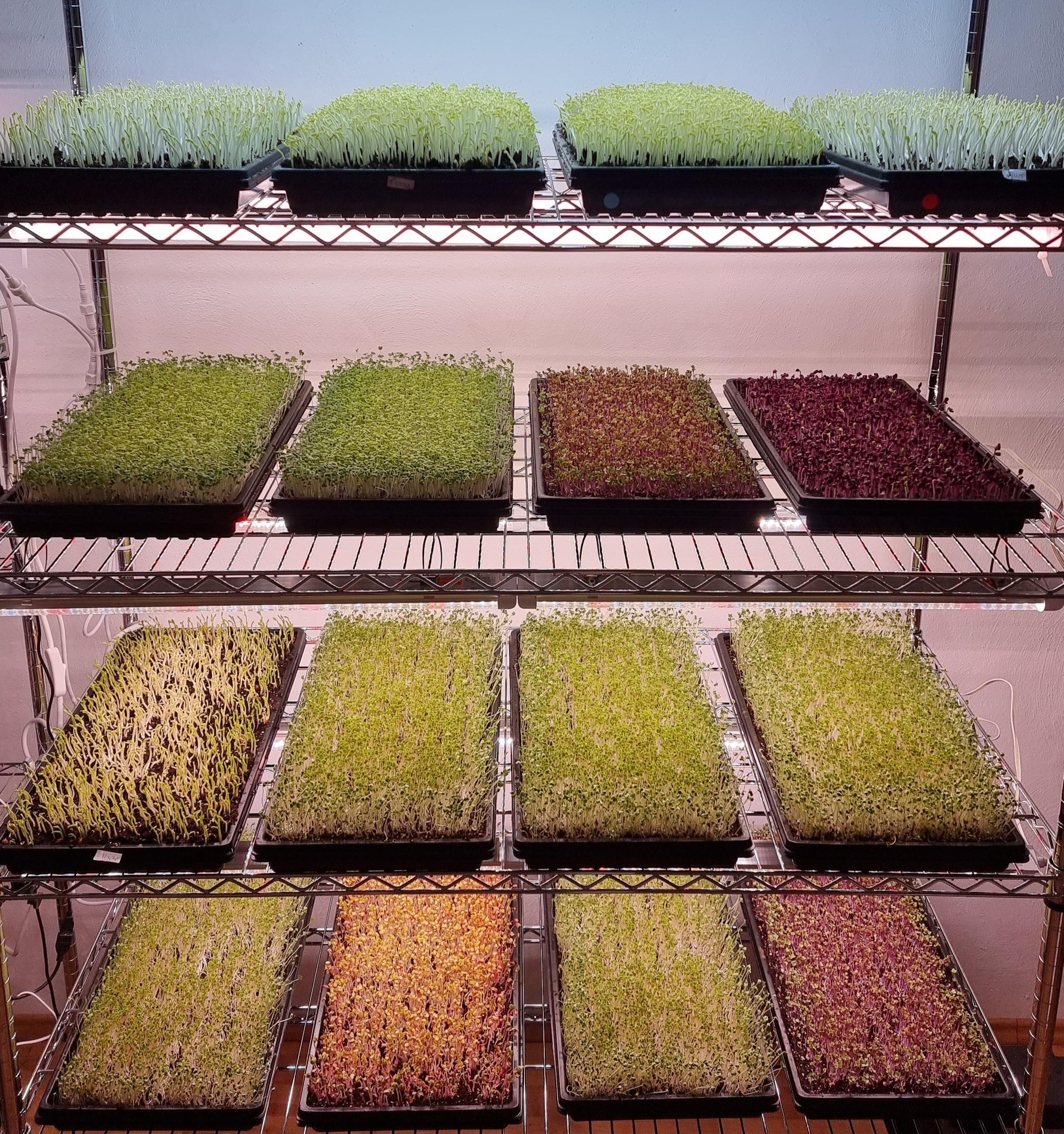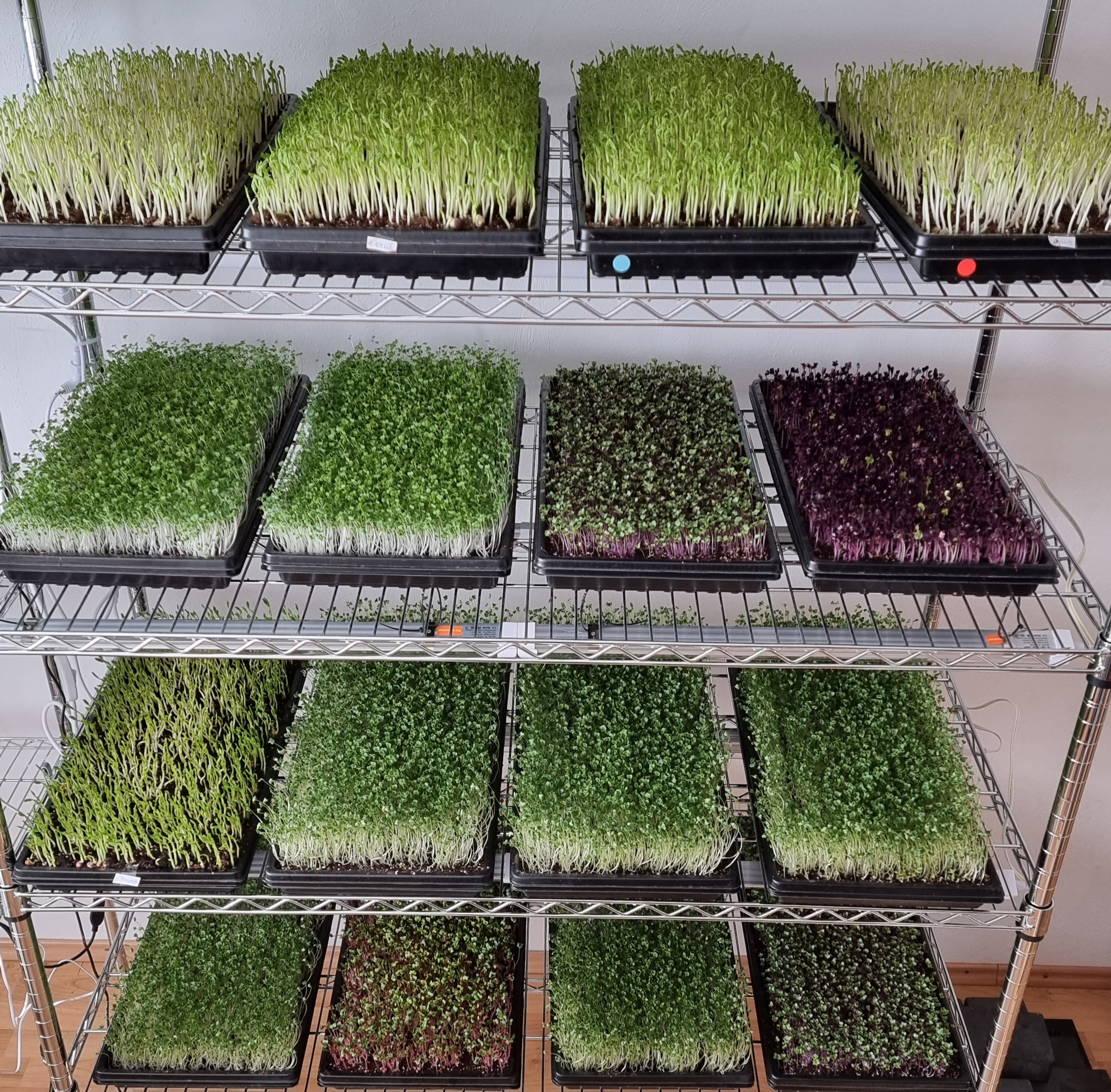 Was ihr gut tut, tut auch anderen gut – genau deswegen richtete Natacha eine ganze Microgreens-Farm ein. Wände wurden mit abwaschbarer Farbe gestrichen, ein Luftentfeuchter und ein Gebläse aufgestellt, Regale und Lampen eingerichtet. Und nach einigen Monaten Vorbereitungszeit wurde der Betrieb vom Veterinäramt dann im März (am Weltfrauentag!) freigegeben: