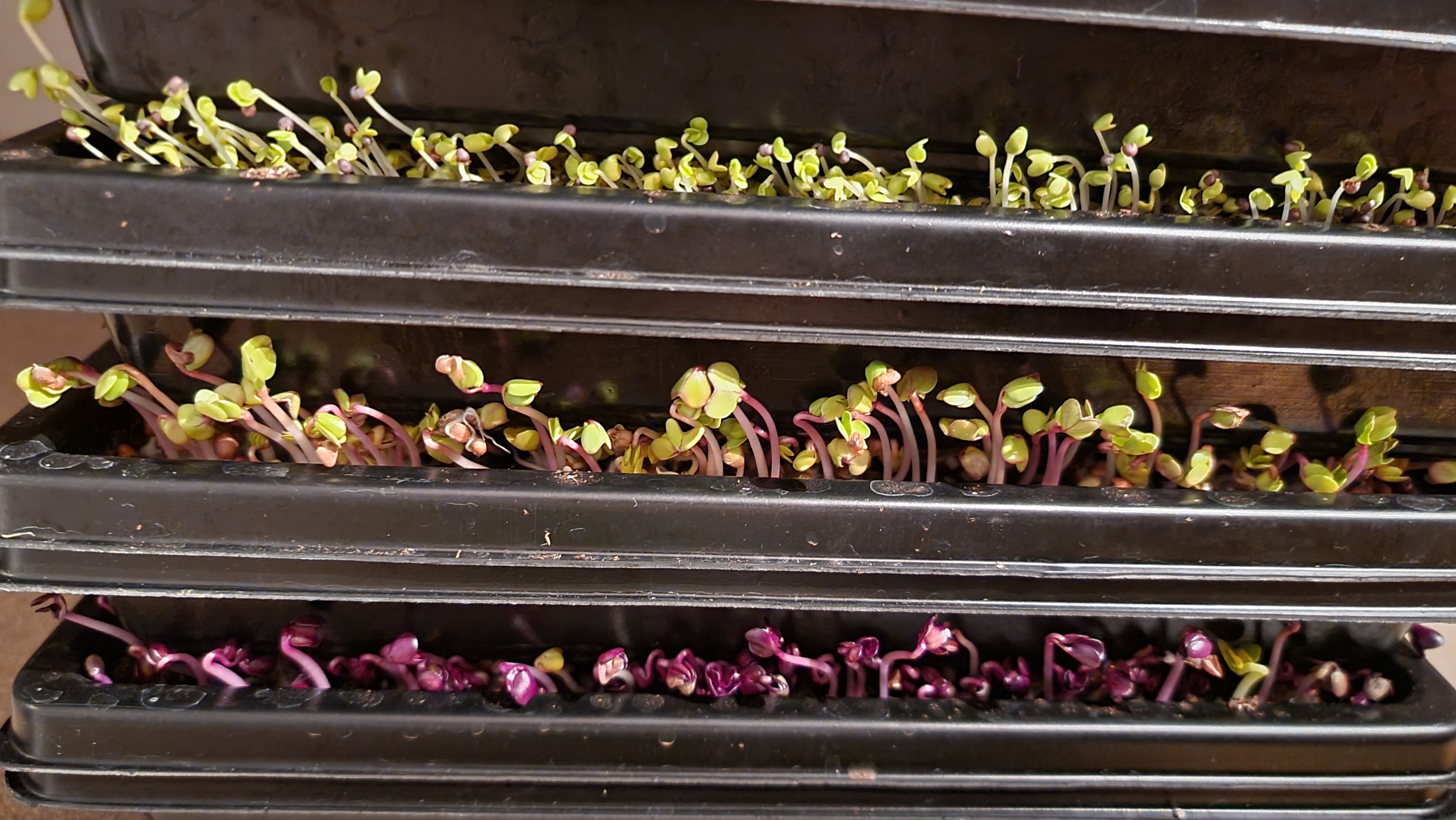 Noch nicht überzeugt? Dann versuchen wir es doch mal mit Vitaminen: Rotkohl-Microgreens enthalten 40-mal mehr Vitamin E, 6-mal mehr Vitamin C und 260-mal mehr Beta-Carotin als die gleiche Menge des ausgewachsenen Gemüses. Seien wir mal ehrlich – so viel kannst du auf herkömmliche Weise doch gar nicht essen, da macht es doch wirklich Sinn, statt auf Masse auf Klasse zu setzen!