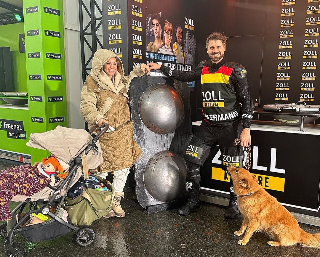 Ilvi hatte eben ein bisschen Angst vor mir. Die fragt sich, warum Papa plötzlich aussieht wie RoboCop. Und meine Frau war anfangs auch echt skeptisch, was meine Teilnahme hier angeht. Die Verletzungsgefahr ist ja nun mal auch nicht ganz unerheblich. Aber damit ich nicht ganz abhebe, sind die Beiden nun mitgekommen, um mich zwischendurch immer mal wieder zurück auf den Teppich zu holen.