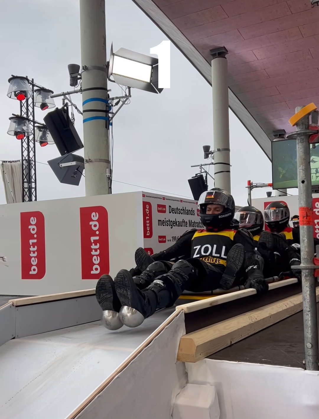 Die Strecke kannte ich tatsächlich noch gar nicht; ich war hier in Winterberg natürlich mal zum Skifahren, aber an der Bobbahn bin ich zum ersten Mal. Nach den ersten Fahrten ist aber schon klar, dass die Kurve 9 echt gefährlich ist. Der größte Unterschied zwischen den beiden Bahnen ist aber für mich, dass die hier fast vor der Haustür ist; auf dem Rückweg fahren wir noch bei meinen Eltern vorbei, das fühlt sich schon anders an, als irgendwo in Österreich unterwegs zu sein.