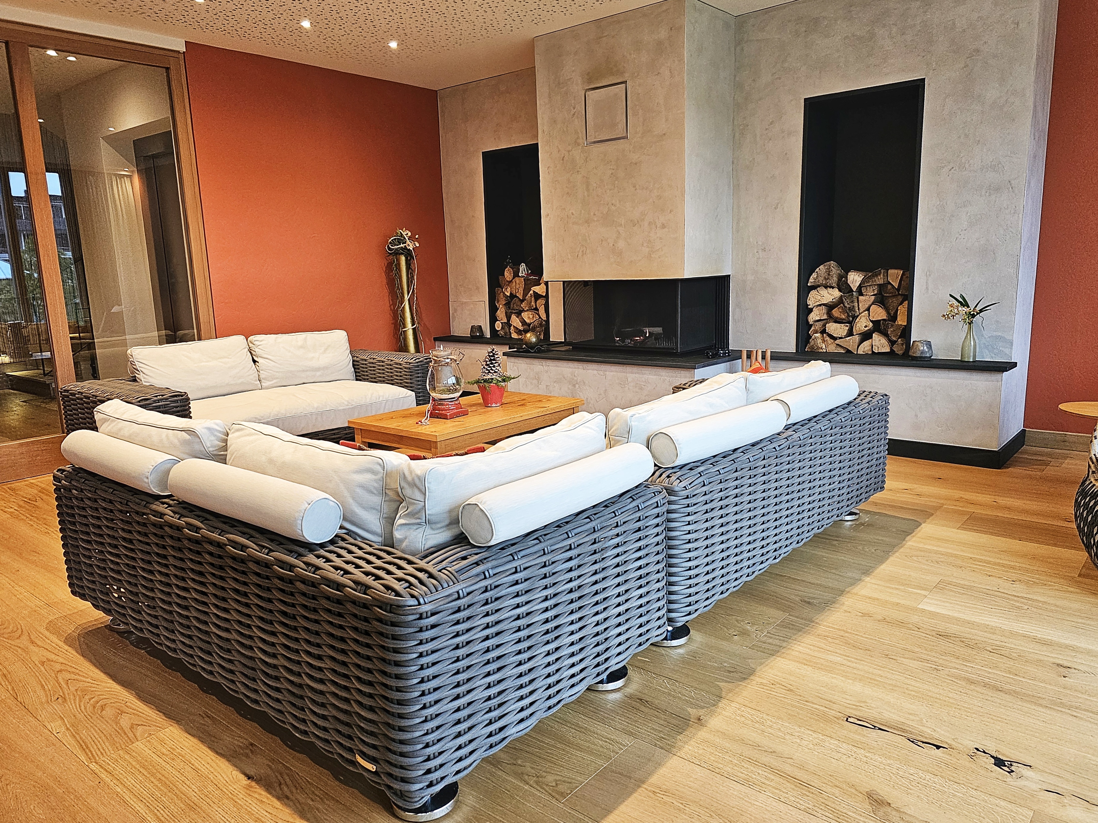 Das kann ich dir verraten: Da, wo ehemals das Teichhäuschen stand, sind in den letzten Monaten die „Seeterrassen“ entstanden. Drei Ruhe-Etagen mit bodentiefen Panoramafenstern bieten einen stillen Rückzugsort – adults only! – auf höchstem Niveau, zweistufig automatisch verstellbare Liegen und eine Kamin-Lounge sorgen für den entsprechenden Komfort, auf den Infrarotsitzen oder in der Micro-Salt-Kabine erlebst du Wellness pur. Ich denke, einen schöneren Ort, um die Seele mal richtig baumeln zu lassen, kann es kaum geben – oder was meinst du?