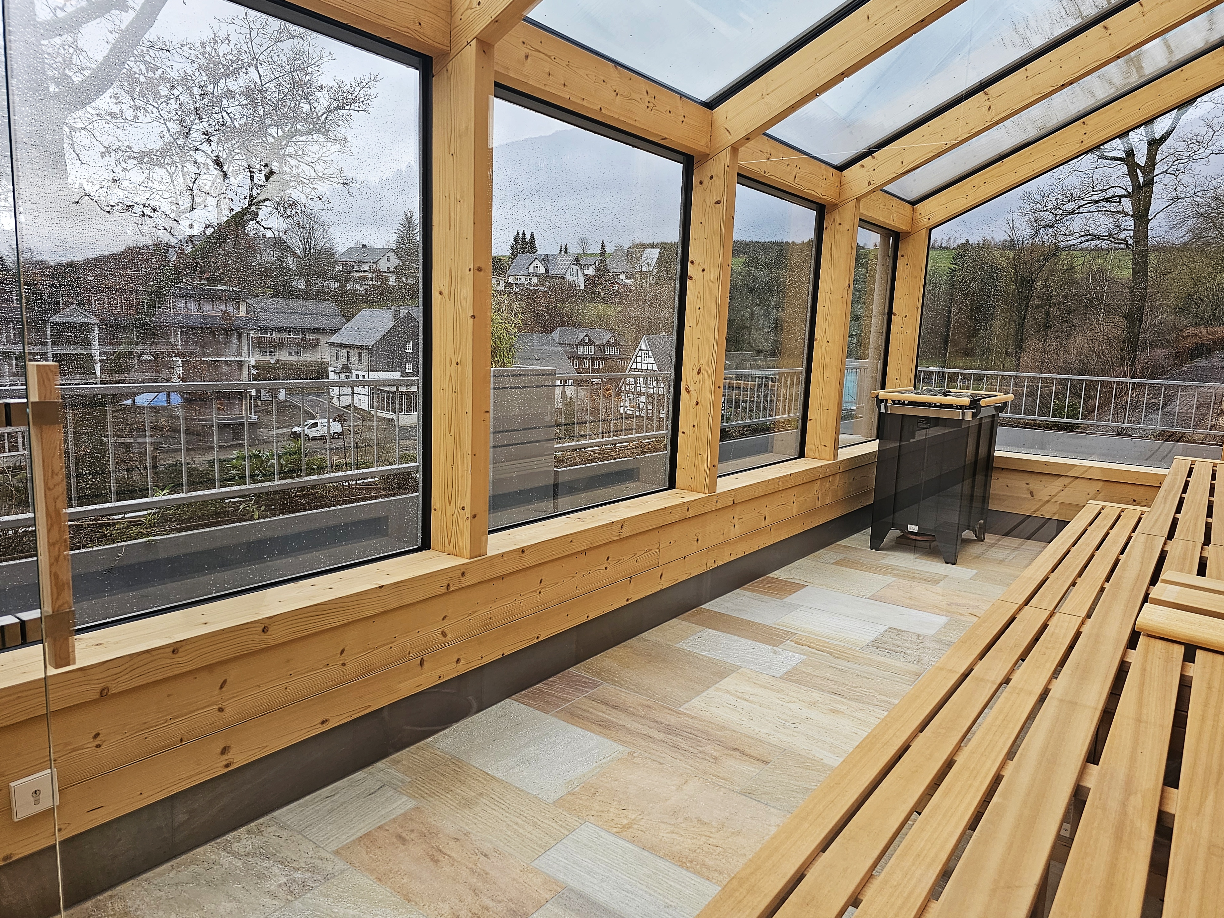 Doch das Highlight kommt erst noch: Ganz frisch sind am 21. Dezember auch die obersten Etagen eröffnet worden. Was daran so besonders sein soll!? Na, kennst du noch einen anderen Infinity-Pool mit Massageliegen und einem traumhaften Blick auf das Schmallenberger Sauerland? Wenn ja, lass es mich wissen; dort schaue ich auch gern mal vorbei! Um den besonderen Genuss perfekt zu machen, befinden sich gleich nebenan ein Dampfbad und zwei Panorama-Saunen, ebenfalls mit bodentiefen Fenstern. Erfrischung bietet der Außenbereich mit Duschen, zwei Tauchbecken und einer Eiskammer, demnächst soll auf dem Dach auch noch eine Terrasse hinzukommen, damit du auch unter freiem Himmel ausspannen kannst!