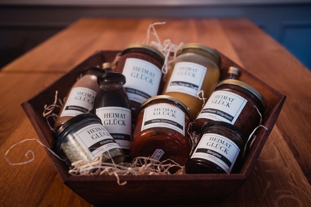 Die Frische und Regionalität der Zutaten bedingt immer auch eine beschränkte Verfügbarkeit: Wenn gerade keine Jagdsaison ist, gibt es auch kein Wild, wenn die Johannisbeeren aus diesem Jahr verkauft sind, gibt es erst nächstes Jahr wieder welche. Doch du wirst im Online-Shop immer fündig, denn irgendetwas hat immer Saison… Und ja, ich weiß, bis Weihnachten ist es noch ein bisschen hin – doch die ersten Firmen bestellen gerade die Geschenke für ihre Mitarbeitenden. Ob als Präsentkorb oder im individuell gestalteten Jute-Beutel – Alexandra und Julia lieben es, individuelle Wünsche zu erfüllen und die Gestaltung dieser zu organisieren.