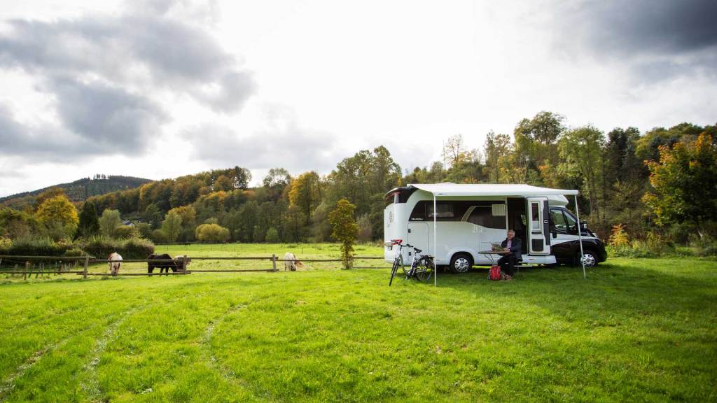 Diesen Blick haben übrigens auch gut die Hälfte der elf Stellplätze auf dem Campingplatz zu bieten. Und auch die anderen müssen auf alle Annehmlichkeiten einer gemütlichen Auszeit nicht verzichten: Strom und WLAN, eine Spülstation und eine benachbarte Bäckerei lassen keine Wünsche offen, und nach Absprache darfst du sogar deinen Vierbeiner mitbringen.