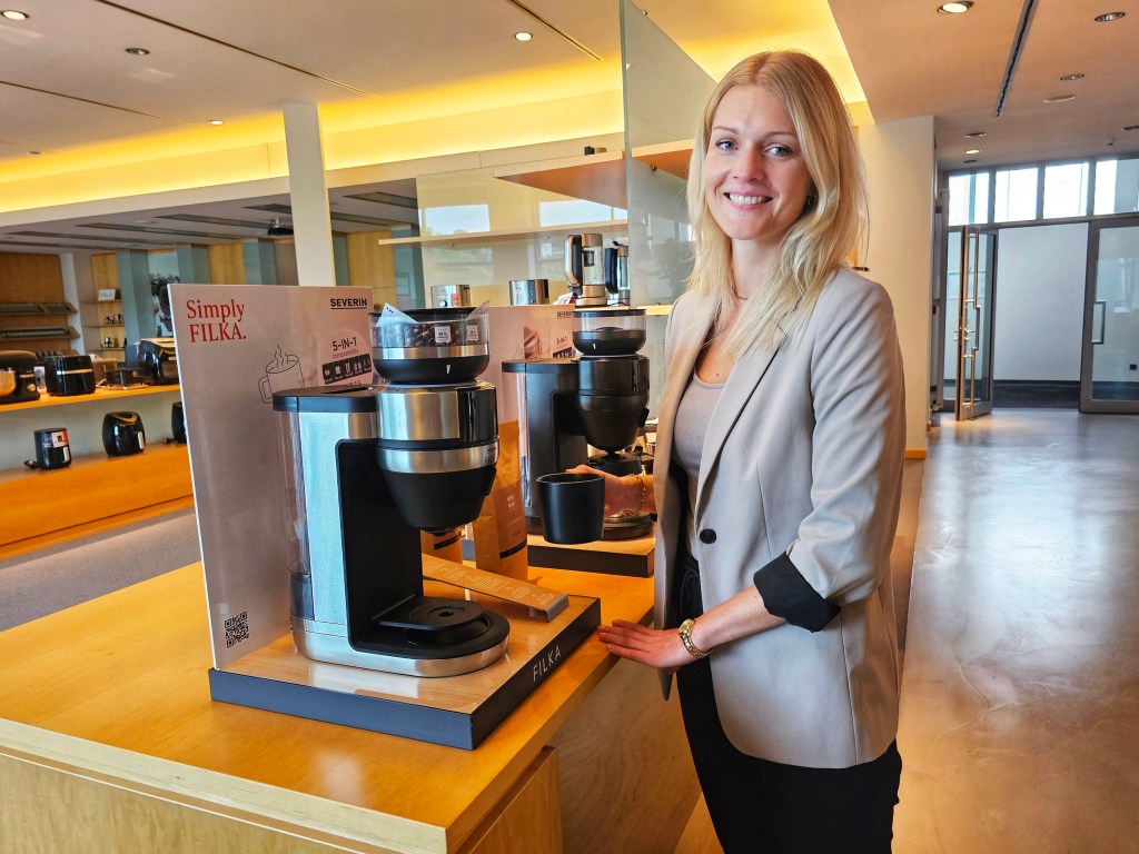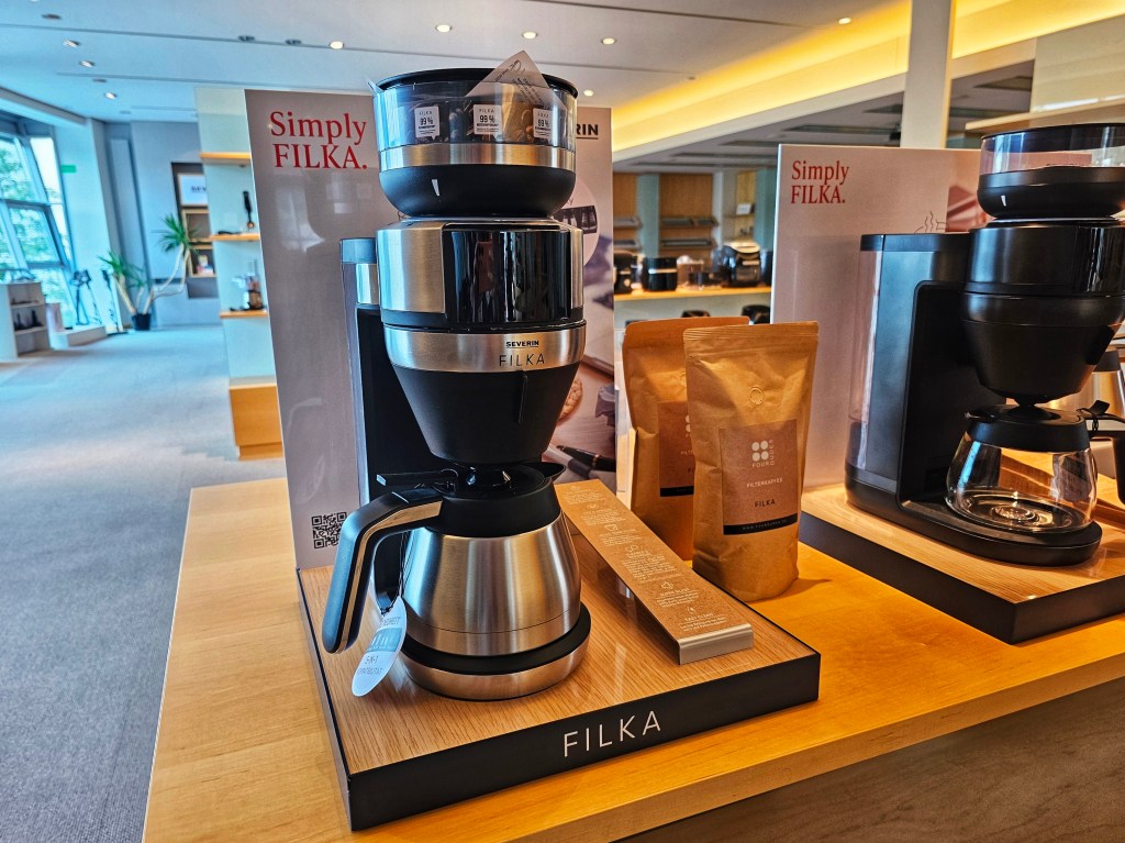Klar, dass ich dir nun nicht alle Geräte einzeln vorstellen kann, die der Showroom zu bieten hat, aber zwei davon solltest du unbedingt kennen: Die „FILKA“ mein absoluter Favorit, ist ein Vollautomat für Filterkaffee. Die Kaffeebohnen werden frisch – und besonders leise! – gemahlen, anschließend wird dein Kaffee im wiederverwendbaren und spülmaschinenfesten Goldtonfilter aufgebrüht.