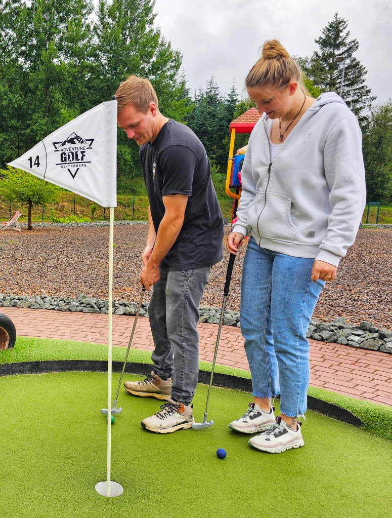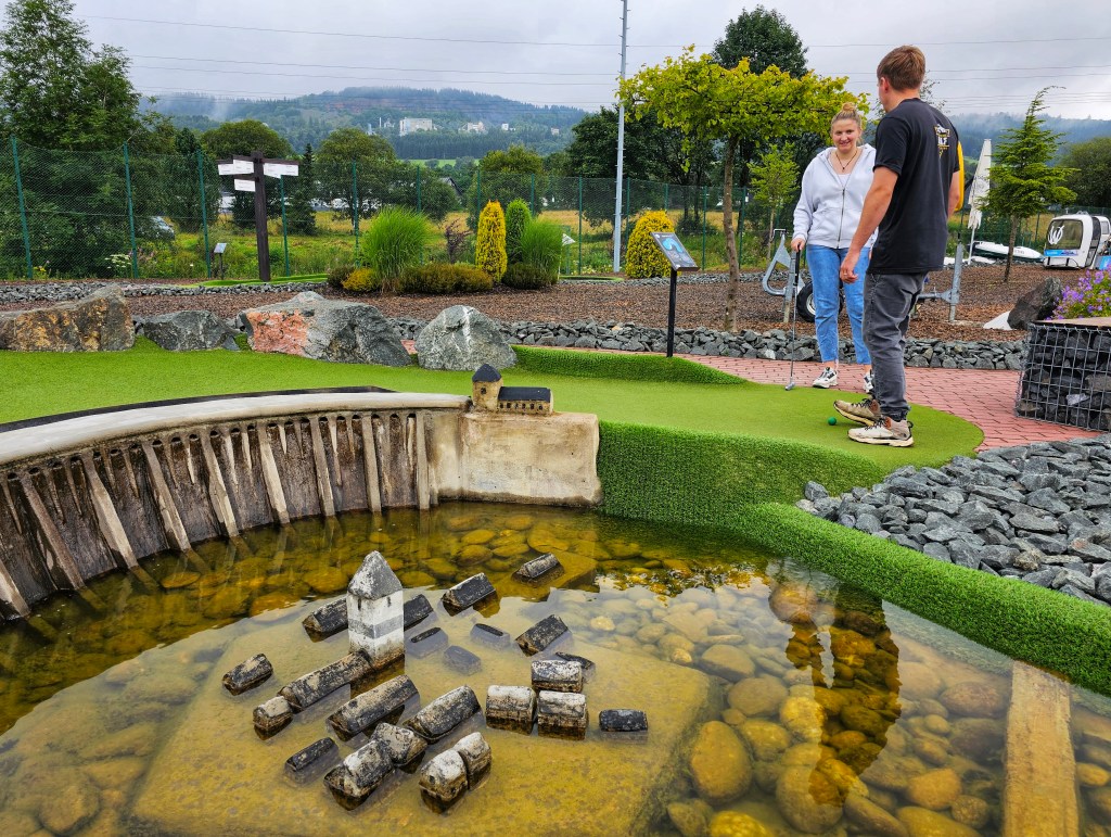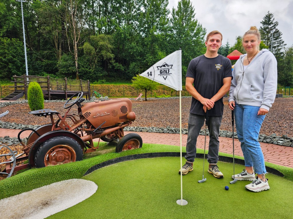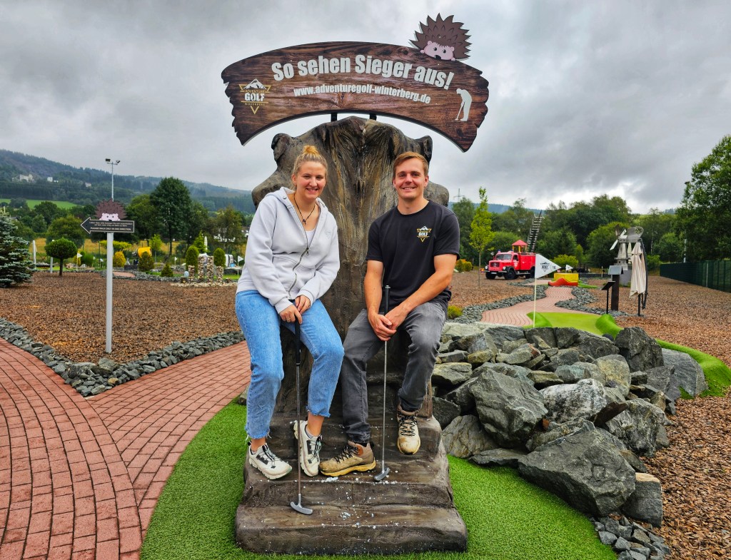 Oder du probierst es einfach direkt selbst aus, denn so hat auch bei Monique und Robin die Liebe zum Adventure Golf begonnen: Zum ersten Mal haben sie es auf Fehmarn gespielt, da Moniques Eltern dort einen Wohnwagen stehen haben, waren sie häufiger dort und wurden zu Wiederholungstätern. Denn obwohl sie die Bahnen inzwischen schon gut kannten, hatten sie immer wieder ganz viel Spaß… Da liegt die Idee natürlich nahe, ein solches Projekt auch zuhause im Sauerland aufzuziehen – und genau das haben die Beiden dann auch gemacht.