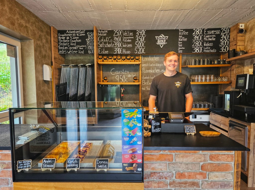 Und da so viel Wettkampf bekanntlich anstrengend ist, wartet direkt an der Anlage eine verdiente Erfrischung auf dich: Das ehemalige Vereinsheim haben Monique und Robin aufwendig umgebaut, hier findest du nun ein Bistro und Café mit selbstgebackenem Kuchen, Eis, Getränken und kleinen Snacks. Der Biergarten bietet eine gemütliche Lounge und insgesamt 60 Plätze – der perfekte Ort für eine kleine Pause zwischendurch oder für die Belohnung zum Schluss!