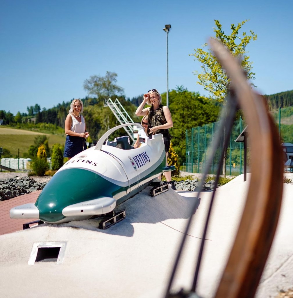 Die Drohnenaufnahme, die beiden Bilder von den Bahnen „Postwiese“ und „Bobbahn“ sowie die „Vorher-Fotos“ vom Gelände wurden mit freundlicher Unterstützung von Monique und Robin Schloßmann zur Verfügung gestellt.