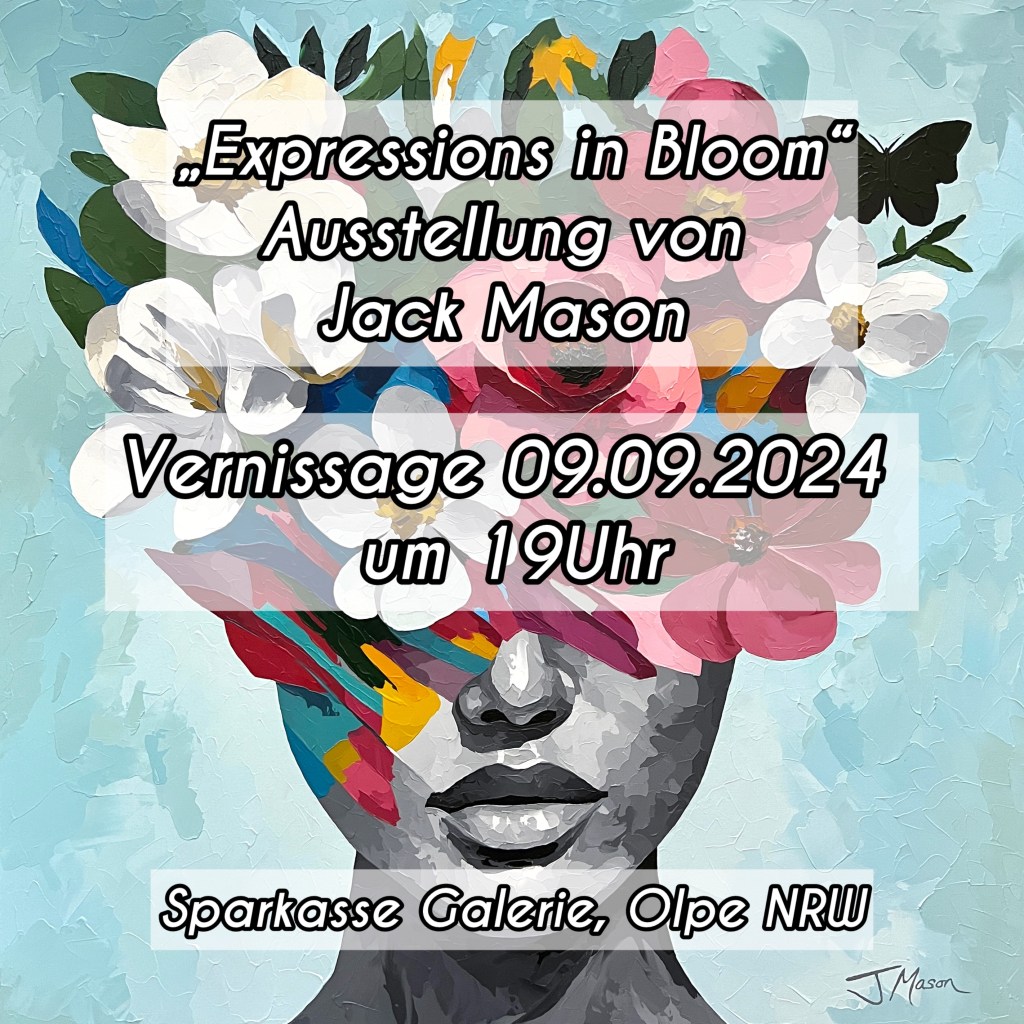 Ich habe lange meine Bilder hauptsächlich über Social Media gezeigt, und das ist auch auf große Resonanz gestoßen, aber ich wollte dann damit auch mal in die wirkliche Welt hinausgehen. Ich habe schon einige Gruppenausstellungen gemacht, und im September beginnt meine erste große Einzelausstellung. Das ist in der Sparkasse in Olpe, die Vernissage ist am 09. September um 19 Uhr, die Ausstellung bleibt dann bis zum 11. Oktober. Ich werde dreißig Bilder ausstellen, etwa die Hälfte davon aus der Serie „In Bloom“. Zu den Öffnungszeiten der Sparkasse ist die Ausstellung frei zugänglich, zur Vernissage bin ich dann auch selbst da und stehe für Fragen bereit – jeder ist herzlich eingeladen, vorbeizukommen!