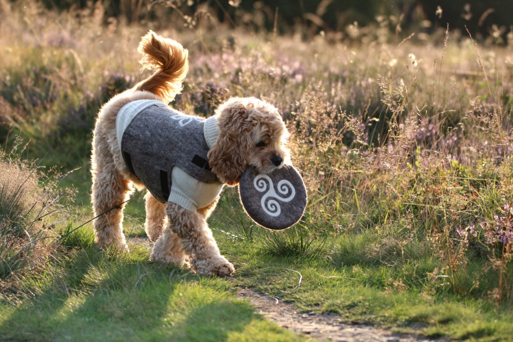Nun könntest du denken, ich wäre der glücklichste Hund der Erde, und ja, das bin ich auch! Denn mit dem Spielzeug war es längst noch nicht getan: Kasey und Manuel wissen ja, dass ich eine kleine Frostbeule bin, und deswegen habe ich dann auch noch kuschelige Sweater aus reiner Merino-Wolle bekommen; die sind zwar kunterbunt, aber ebenfalls nur mit pflanzlichen Stoffen gefärbt. Dann gab´s auch noch eine schöne Weste, denn Manuel kommt aus Winterberg, und da sagt schon der Name, dass ich bei meinen Besuchen etwas Warmes zum Anziehen brauche.