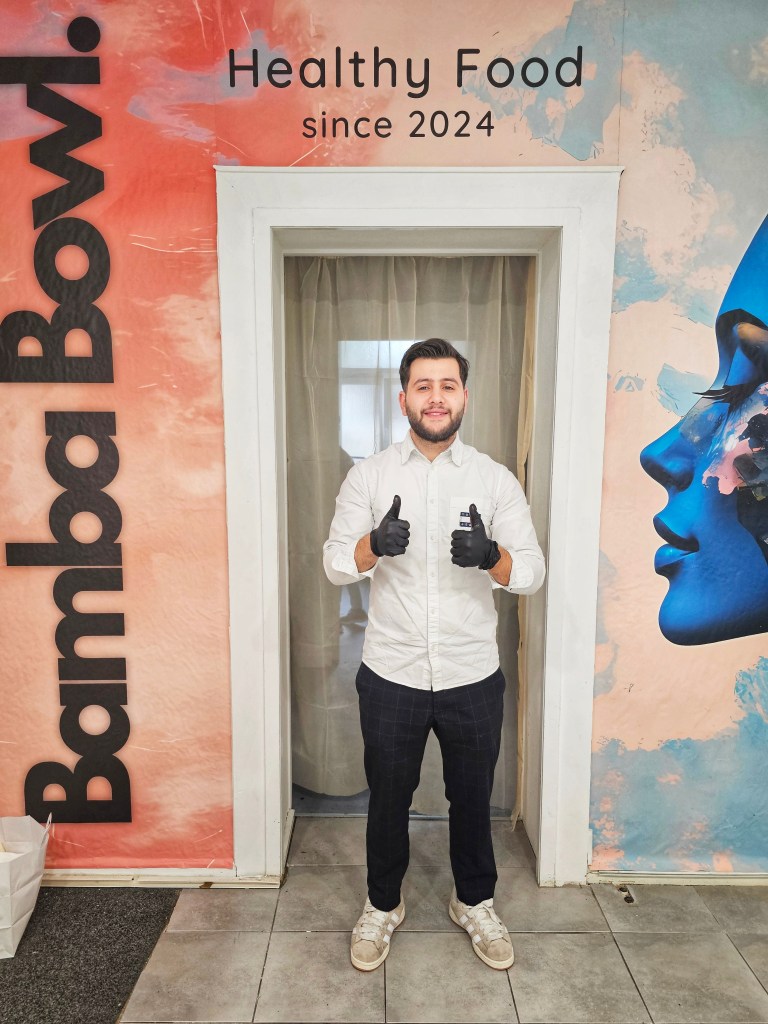 Wie du dir bestimmt vorstellen kannst, erfordert es eine Menge Mut und Einsatzbereitschaft, um so ein Projekt anzugehen. Domenico ist gerade einmal 21 Jahre alt, doch er ist kein Neuling in der Gastronomie: Seine Familie betreibt die Pizzeria „Ciao buongiorno“ in Menden. So kann er nicht nur auf wertvolle Erfahrung zurückgreifen, sondern hat mit seiner Freundin Chiara Patané, die „Bamba Bowl“ gemeinsam mit ihm an den Start brachte, auch eine starke Partnerin an seiner Seite… Und was hat es nun mit dem Namen „Bamba Bowl“ auf sich? Der kam Domenico einfach in den Kopf – kurz, einprägsam und perfekt passend für seine kunterbunte, frische Küche.