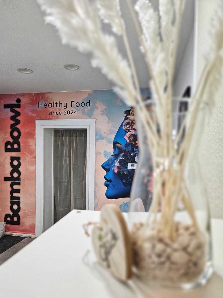 Der Umbau und die Bürokratie dauerten zwar, aber nach vier Monaten intensiver Arbeit war „Bamba Bowl“ bereit für die Eröffnung. Das Highlight im Lokal? Ein riesiges, auffälliges Wandbild, das eigens für „Bamba Bowl“ designt wurde. Gemeinsam mit einem Bekannten hat Domenico das Bild entwickelt und auf Tapete drucken lassen – ein absoluter Eyecatcher, der den Raum sofort zum Leben erweckt.