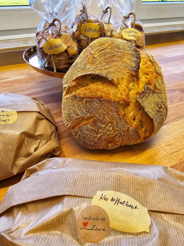 Kaum hatte sich die Gründung von „Chümmi“ herumgesprochen, wurde die Nachfrage nach echtem Brot immer lauter. So bietet Celine heute eine Auswahl an Broten wie die z.B. „Oene Kruste“, den „Hümmler Mümmler“, das „Heimat Hafer“ und das „Saatenbrot“ an. Momenten backt sie zwei Mal die Woche – dienstags und freitags von 12 bis 16 Uhr kannst du deine Bestellungen abholen –, weitere Backtage sind geplant. Da die Quell-, Brüh und Kochstücke vorbereitet, die Kartoffeln gekocht und die Saaten geröstet werden müssen, braucht es eine Vorlaufzeit von zwei Tagen; du solltest also bis Mittwoch bzw. Sonntag vorbestellt haben, um dein frisches Brot zwei Tage später abzuholen. Vorbestellen kannst du einfach über die Website – dadurch kann Celine planen und bereitet lediglich die benötigten Teigmengen zu. So geht Nachhaltigkeit…