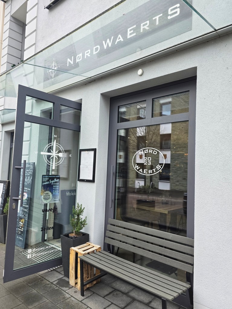 Klar, abends bleibt viel Zeit, in Ruhe bei Tisch zu sitzen, doch auch für die kurze Mittagspause hat Thomas eine gute Lösung gefunden: Jeden Tag stehen zwischen 12 und 14 Uhr drei Gerichte vorgekocht auf der Theke, du machst dir ohne große Wartezeit deinen Teller selbst voll, und verlässt für 11 Euro inklusive Getränk das „NordWaerts“ gut gestärkt und bereit für den restlichen Arbeitstag.