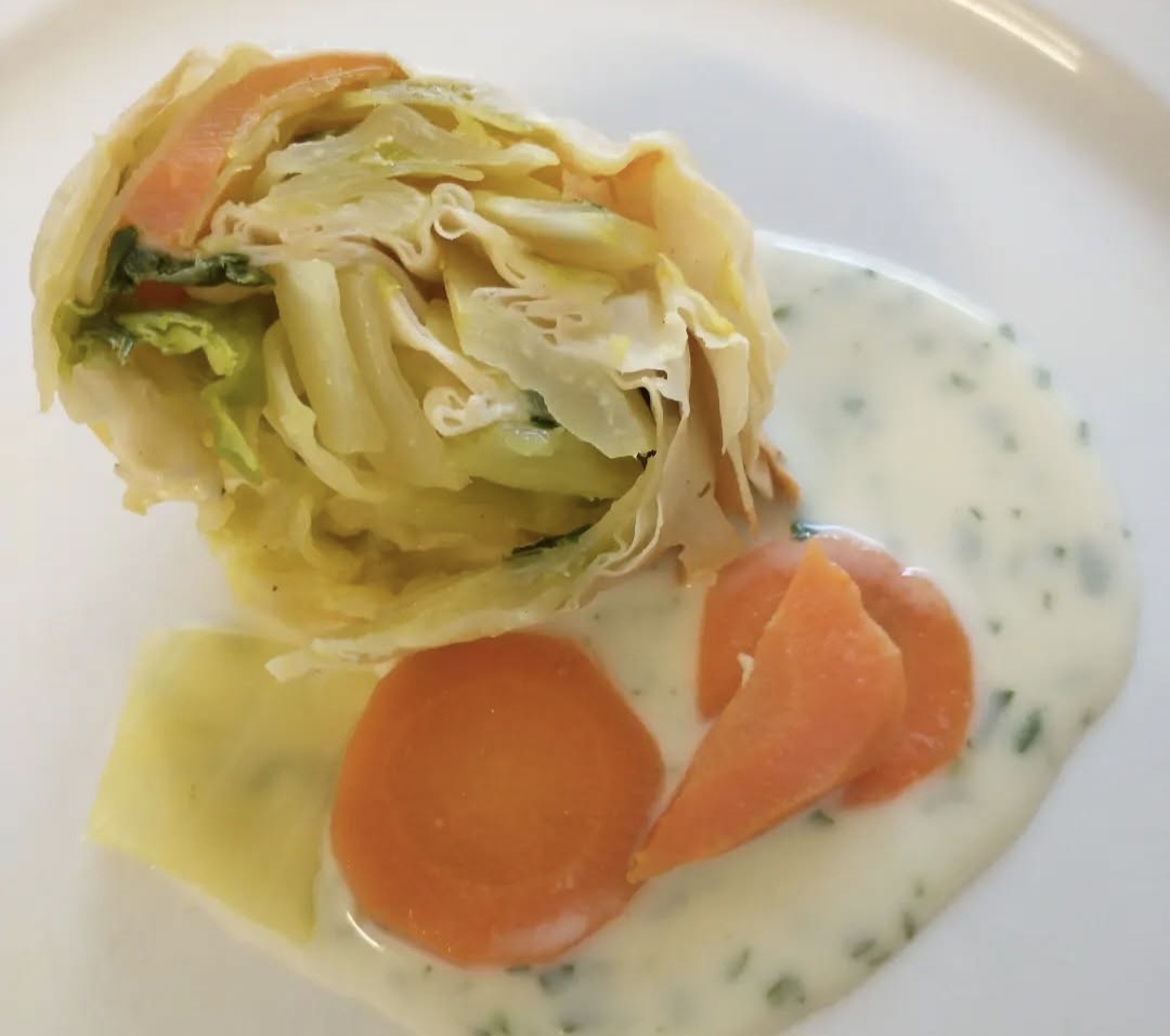Was die Corona-Zeit für die Gastronomie bedeutet hat, muss ich dir nicht erzählen… Auch Carola und Thomas mussten direkt zu Beginn des ersten Lockdowns eine große, lang geplante Feier absagen, für die sie bereits jede Menge eingekauft hatten. Dementsprechend dankbar waren sie für die vielen Anfragen ihrer Stammgäste, die nicht auf das gute Essen verzichten wollten. Als erstes ging der Skrei, ein atlantischer Kabeljau, für den Außer-Haus-Verkauf über die Theke, auch heute spielt Fisch noch eine entscheidende Rolle: Jeden Freitag gibt es frischen Fisch, wie kürzlich „Bachsaiblingsfilet mit Brotkruste“, der zuhause nur kurz in den Backofen geschoben werden muss – damals ein echter Klassiker im Restaurant, der auch heute auf keinen Fall fehlen darf!