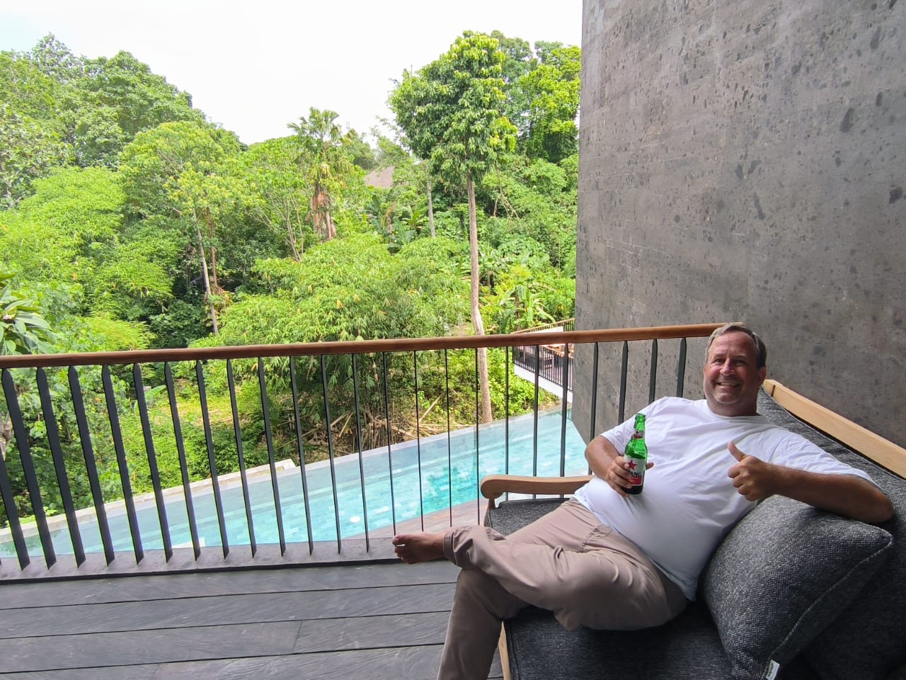 Ich hatte 2007 in Vietnam einen sehr schweren Motorradunfall, dem fünfzehn Operationen und ca. ein Jahr Krankenhaus folgten. Danach bin ich wieder nach Indonesien, aber ich wollte mein Leben ändern und entschleunigen. In der Zeit, in der ich für die französische Firma gearbeitet habe, hatte ich keine Wohnung und habe nur in Hotels gewohnt. Jede Woche zwischen Vietnam und Indonesien gependelt…. Das wollte ich nicht mehr. Also habe ich mit einer indonesischen Bekannten eine Firma in Singapur gegründet. Die Firma heißt „Octagon“. Wir entwickeln Gartenmöbelsortimente und vertreiben diese in Europa… Und genau das mache ich bist heute! Unsere Partnerfabriken sind auf Java, und ab und zu haben wir Projekte in China. Da ich nicht aktiv täglich in der Fabrik sein muss, haben wir, meine Frau Lia und ich, uns für Bali entschieden, da hier die Lebensqualität speziell als Ausländer deutlich besser ist. Hier ist dann 2014 auch unsere Tochter Alexa geboren. Meine Kinder Larissa und Morris waren von Anfang an in den Ferien hier bei uns, und beide haben ein Praktikum in Asien gemacht. Das ging natürlich nur aufgrund der Unterstützung und Zustimmung meiner Ex-Frau Katja. So schwer eine Scheidung für alle ist, kann man es doch erträglich für die Kinder gestalten, wenn man an einem Strang zieht.