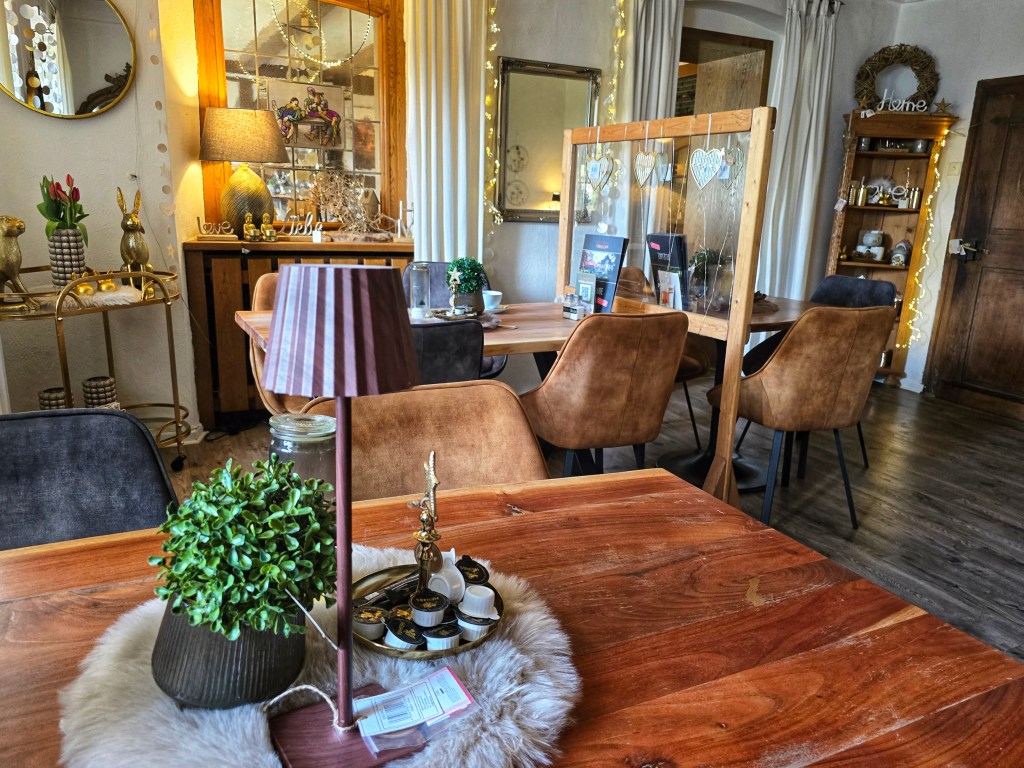 Vor ein paar Jahren kam dann die Zeit für eine kleine Veränderung. Die alten, zusammengewürfelten Stühle und Tische waren in die Jahre gekommen, und Cora suchte nach einer Lösung, die den Stil des Hauses bewahrt und gleichzeitig für frischen Wind sorgt. Heute strahlt das Café in einem modernen, aber dennoch rustikalen Stil – authentisch, gemütlich, zeitlos.