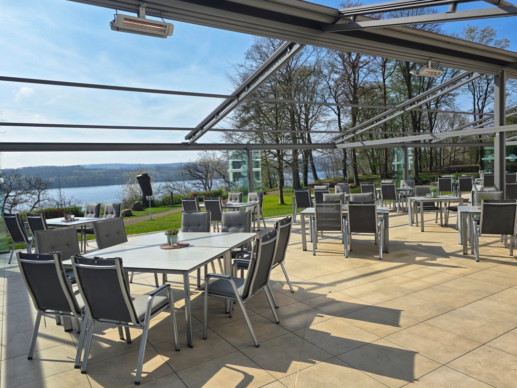 Rund 60.000 Quadratmeter misst das Areal direkt am See. Sechs Gebäude gehören aktuell dazu: Das Haupthaus, die „Dependance“ mit Zimmern und Tagungsräumen, die „Remise“ als zweites Restaurant, die „Tenne Deele“ für Tagungen und Events, ein Mitarbeiterhaus und sogar eine Tennishalle. Und bald kommt noch ein siebtes hinzu: Eine Hotelerweiterung mit 29 neuen Zimmern, die ab Sommer 2026 bezugsfertig ist – direkt angebunden ans Haupthaus über eine Brücke.