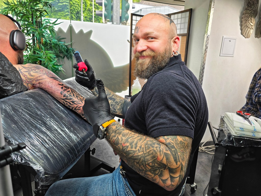 Und selbst an Dinge wie die Pflege danach wurde gedacht: Gemeinsam mit einem Team aus der Schweiz hat Robin eine eigene Creme entwickelt, die genau auf die Bedürfnisse frisch tätowierter Haut abgestimmt ist. Mit natürlichen Inhaltsstoffen, liebevoll abgestimmt, aus echter Erfahrung heraus. Denn gute Pflege gehört eben genauso dazu wie ein gutes Motiv.