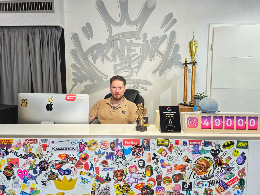Der Name ist ein Statement! „Prince“ – weil es um Ausdruck, um Haltung geht. „Ink“ – die vielfältige Welt der bunten Farben. „57“ – ein Gruß an die Heimat, die Postleitzahl 57368. Und das Logo mit Krone und Flügeln? Weil jedes Tattoo hier auch ein kleines bisschen königlich sein darf.