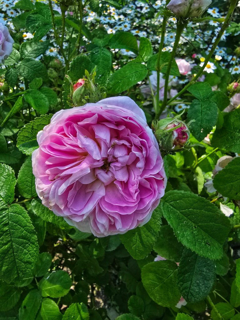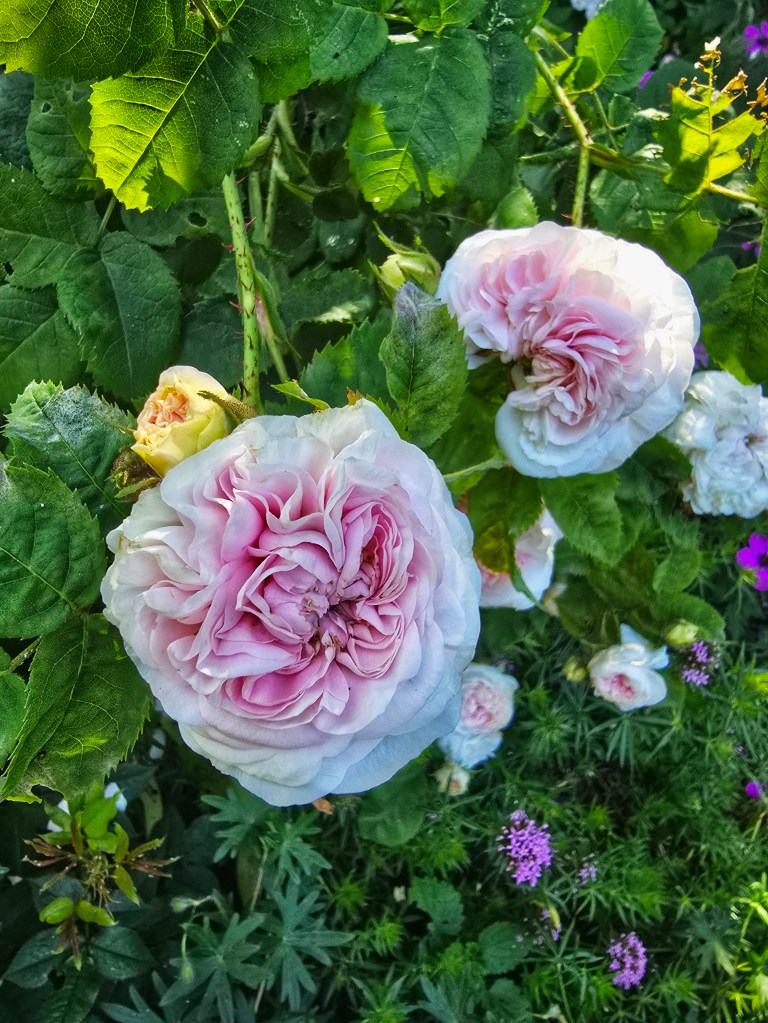 Und dort fällt ihr ein Prospekt über historische Rosen in die Hände. Noch nie gehört davon – aber sofort fasziniert. So sehr, dass sie kurzerhand quer durch Deutschland fährt, um sich selbst ein Bild zu machen. Und natürlich auch, um ein paar Rosen für den eigenen Garten mitzunehmen. Damals ohne Internet, ohne schnelle Infos, einfach mit Neugier und Leidenschaft… Die Rosen zieht sie in ihrem Garten groß, und da ist es dann um sie geschehen. Diese wahnsinnige Vielfalt, die Farben, die Düfte, die Tatsache, dass manche Sorten mehrmals im Jahr blühen. Die Faszination springt über, und zwar nicht nur auf die Rose, sondern auf den ganzen Garten. Auf Begleitstauden, auf das Zusammenspiel der Pflanzen.