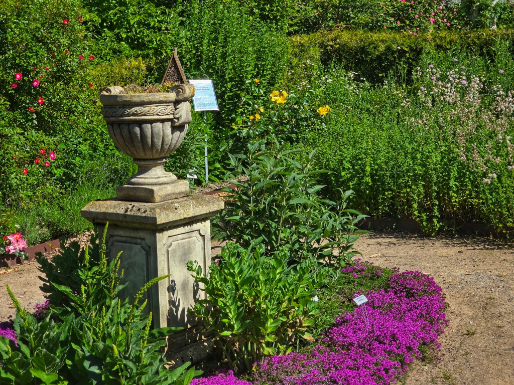 Wenn du durch den Garten schlenderst, entdeckst du acht liebevoll gestaltete Bereiche, die dich auf eine kleine Entdeckungsreise mitnehmen. Da gibt es den Bauern- und Archegarten, der zeigt, wie Menschen früher selbstversorgt gelebt haben. Im Prinzessinnengarten findest du ganz viel Rosa und verspielte Leichtigkeit. Der Nektargarten ist ein Paradies für Bienen und andere Insekten. Der Kneippwinkel zeigt dir Heilpflanzen, die Sebastian Kneipp einst beschrieben hat.