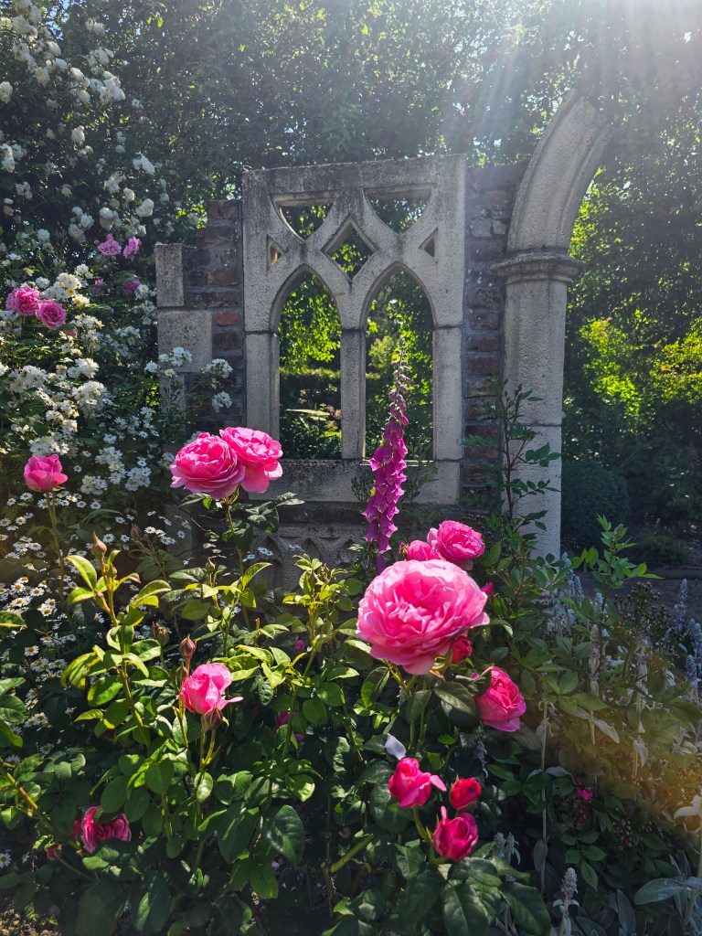 Das Besondere daran: Nicht alle Rosen blühen gleichzeitig, sodass du den ganzen Sommer über immer wieder Neues entdecken kannst. Überall laden Sitzplätze dazu ein, innezuhalten, den Blick schweifen zu lassen und dem Summen der Bienen zuzuhören.