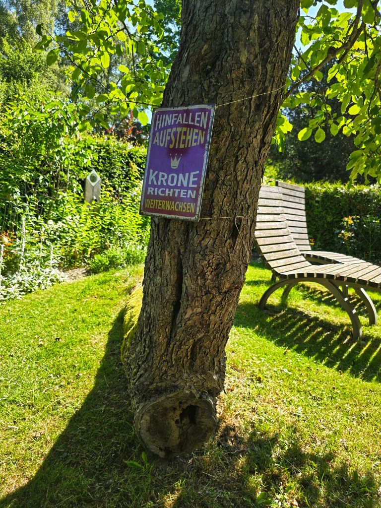 Als Biologin war es Mechtild immer wichtig, nicht nur einen schönen Garten zu schaffen, sondern auch einen Ort, der dir Wissen vermittelt. Überall im Garten findest du kleine Schilder mit spannenden Infos zu Rosen, Pflanzen und wie du deinen eigenen Garten naturnah pflegen kannst.