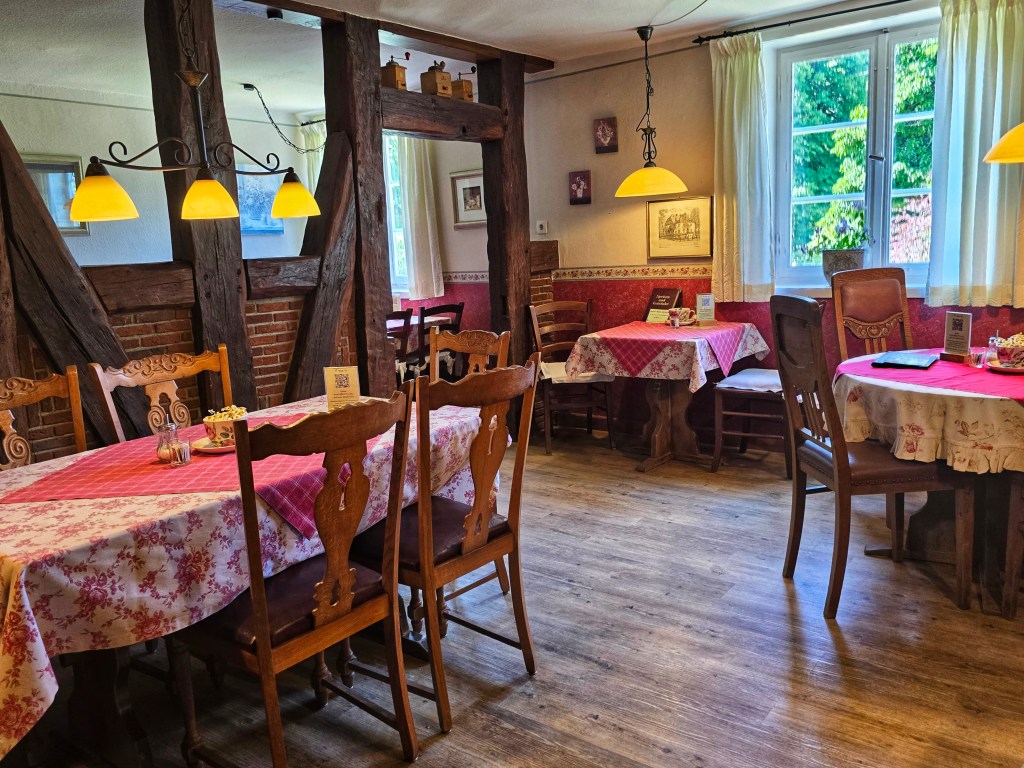 Wenn du nach deinem Spaziergang noch bleiben möchtest, lohnt sich ein Abstecher ins „Gutscafé am Blütengarten“. Das Café befindet sich in einem Gebäude aus dem 18. Jahrhundert, das mit seinem Fachwerk viel Geschichte ausstrahlt – perfekt für eine gemütliche Pause.