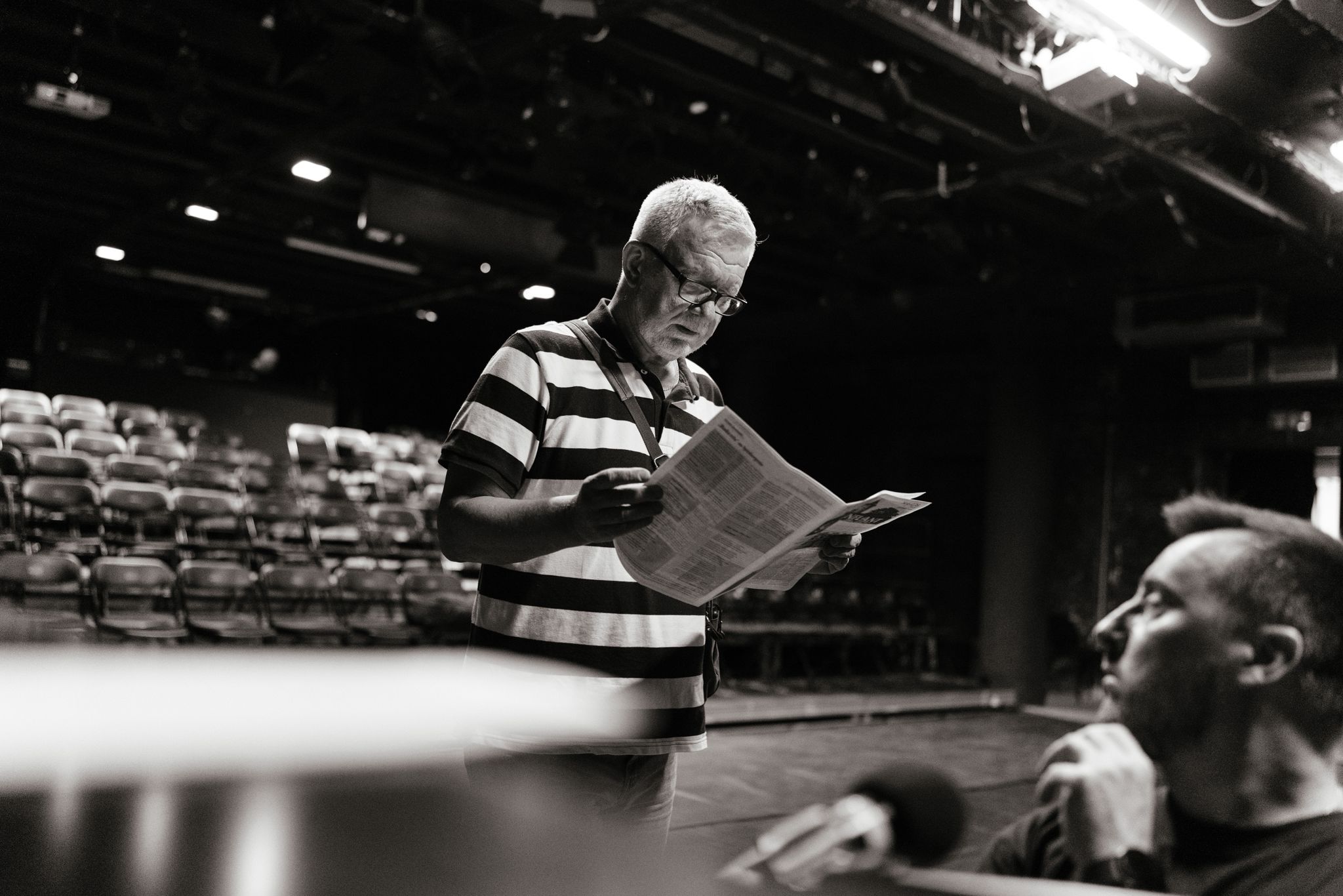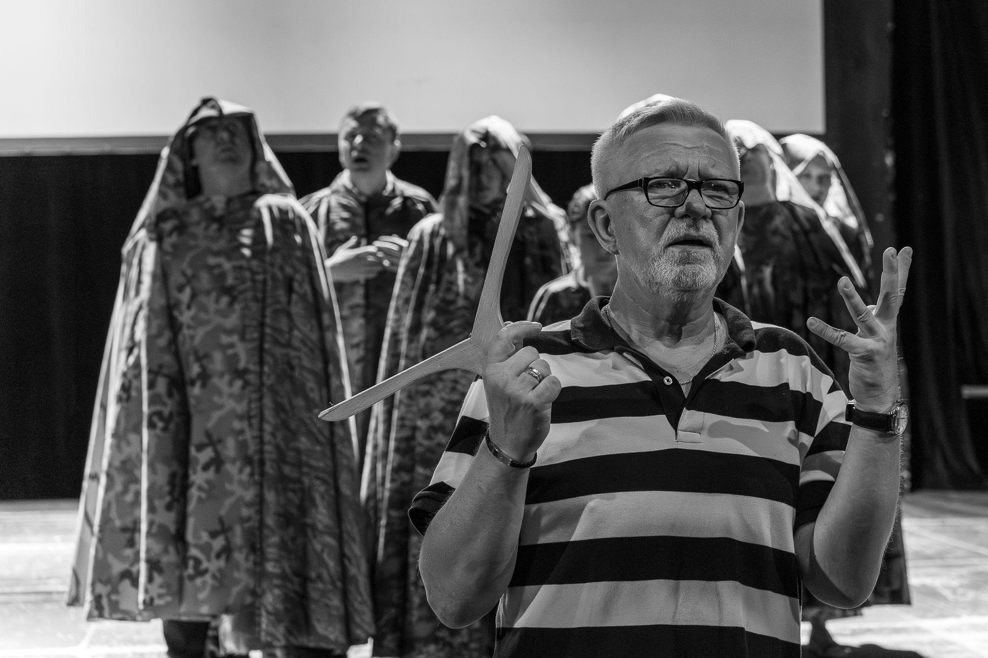 Sasha: Persönlich ist das Theater eine bewusste Entscheidung, einfach mein Lebensberuf. Politisch gesehen ist das Theater namens „Janka Kupala“ das wichtigste Theater des Landes, und dieses Theater hatte die Aufgabe, die belarussische Nation zu einen. Aber seit 2020 ist diese Tätigkeit unmöglich geworden, sie wurde praktisch verboten. Wir versuchen jetzt, diese Funktion des wichtigsten Theaters des Landes im Exil, in Warschau, aufrechtzuerhalten.