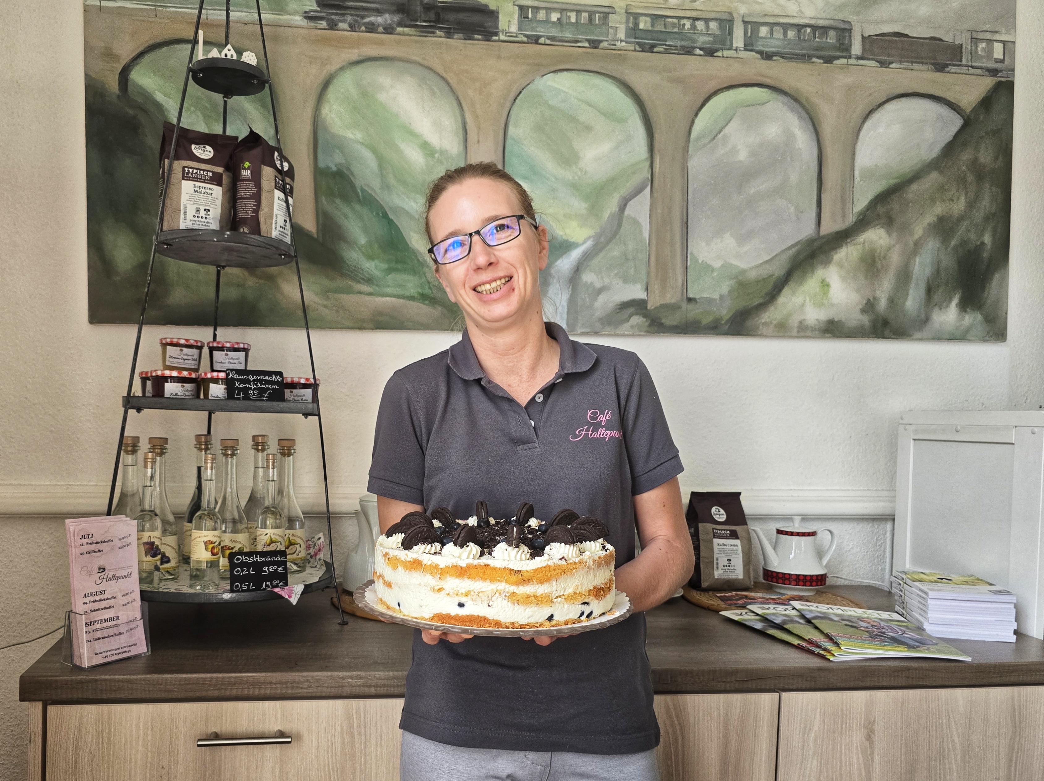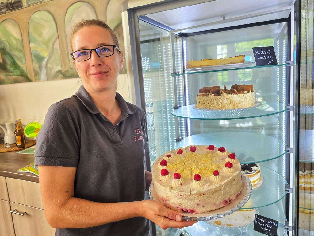 Nach dem Ende des Bahnverkehrs 1962 wurde das Gebäude erst vom SGV genutzt, dann war eine Weinstube darin untergebracht. Ab 2017 wurde es zum „Café Haltepunkt“ – mit Frühstück, einem kleinen Mittagstisch und Kuchen am Nachmittag. Nadine begann 2019 hier zu arbeiten, zunächst im Service, dann auch in der Geschäftsführung. Als ihr damaliger Chef das Café aus familiären Gründen abgeben musste, zögerte sie. Alleinerziehend, voller Verantwortung – ein Café leiten? Das erschien erst zu viel.