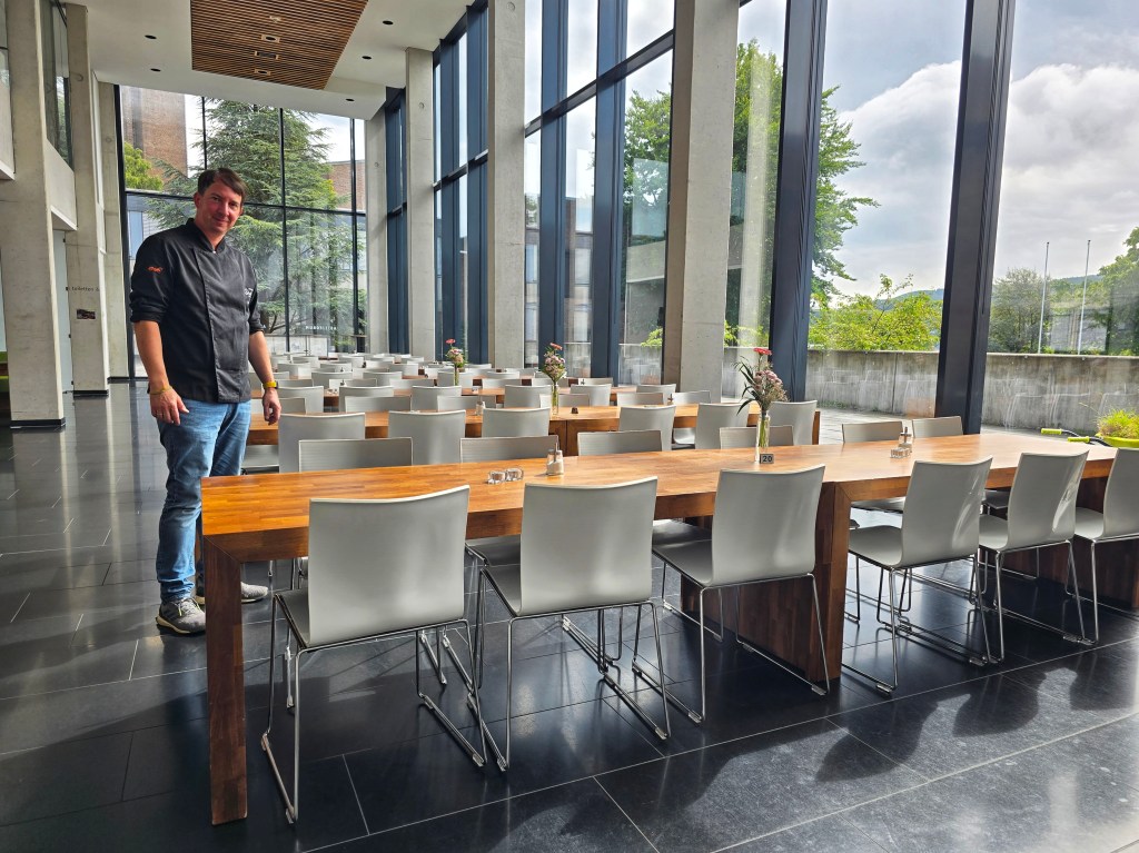 „Mittagstisch“ klingt für dich vielleicht nach Kantine. Hier ist es anders. Der Bereich für die Schulmensa ist klar getrennt, externe Gäste essen in Ruhe.