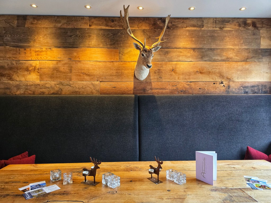 Im Haupthaus findest du das Restaurant „Hermann´s“ und „Josi´s Bar“; dazu noch weitere Gasträume, die aber eher für geschlossene Gesellschaften oder Hotelgäste reserviert sind: Das „Restaurant Antonius“ dient als Frühstücksraum, die „Zirbelstube“ ist aus Zirbenholz getäfelt mit einem gemütlichen Kachelofen, die „Bauernstube“ strahlt mit 200 Jahre alten Eichendielen aus alten Scheunen echte Behaglichkeit aus…