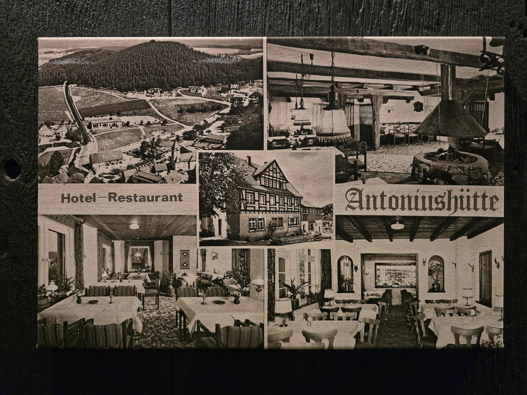 Was heute weit über die Grenzen Eisborns hinaus als Anlaufpunkt für echte Genießer bekannt ist, begann 1932 ganz bodenständig: Brittas Großvater Josef baute das Haus ursprünglich als Bäckerei, ihr Vater Hermann, selbst Bäckermeister, fuhr damals mit seinen Broten auf die Wochenmärkte der Region. 1968 entschied sich die Familie, zusätzlich eine kleine Gaststätte zu eröffnen – in den ehemaligen Garagen, wo früher die Lieferwagen standen. Eigentlich war alles zum Verpachten gedacht. Doch als das Pächterehepaar kurzfristig absagte, machte Großvater Josef kurzerhand seine Zigarrenkiste zur Kasse und wurde selbst zum Wirt; Oma Josephine zauberte Bratkartoffeln und Sülze in der winzigen Kellerküche – und die „Antoniushütte“ war geboren.