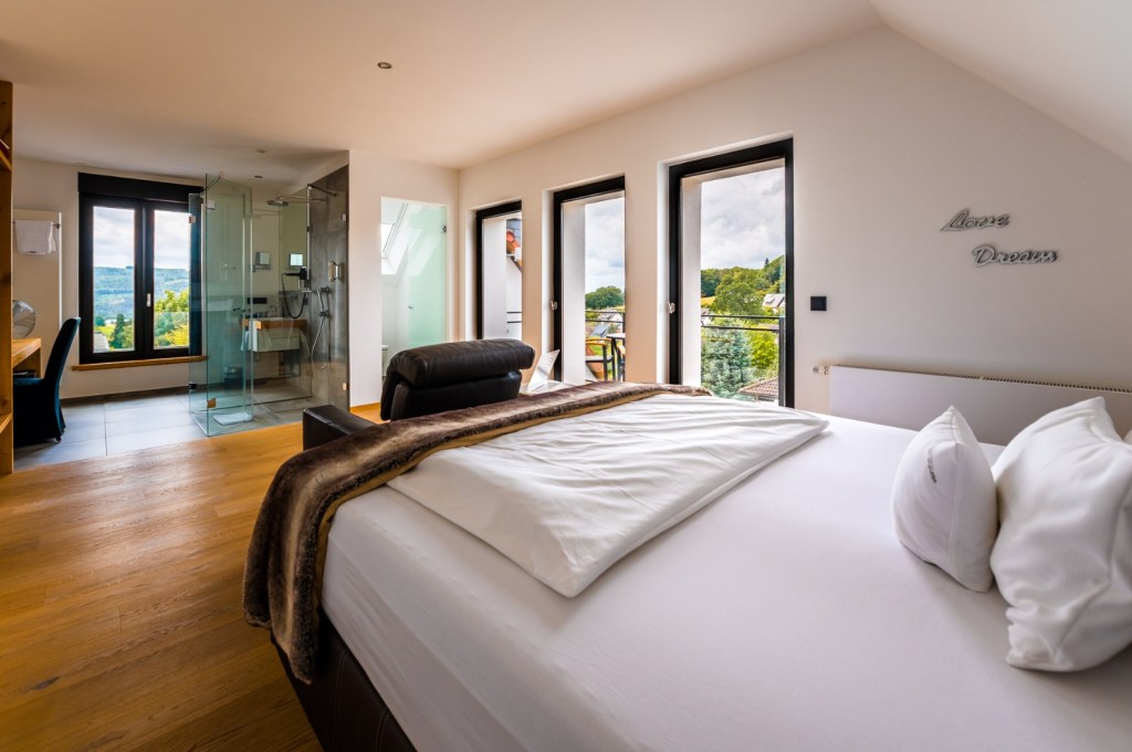 Ein weiteres Gebäude ist das „Schulhaus“: Tagungsräume und noch weitere dreizehn Hotelzimmer, die hier 1998 angebaut wurden – direkt hinter dem Haupthaus, wo früher ein Schweinestall stand. In den drei Gebäuden findest du Hotelzimmer in drei verschiedenen Kategorien und drei verschiedenen Stilrichtungen, von urig-rustikal bis ganz modern.