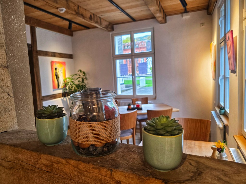 Wenn du durch das alte Fachwerk gehst, entdeckst du gemütliche Sitzecken, kleine Nischen, abgetrennt durch Holzbalken, die Geschichten aus Jahrhunderten erzählen. In der oberen Etage finden auch geschlossene Gesellschaften Platz – perfekt für kleine Feiern, Treffen oder einfach einen besonderen Abend.