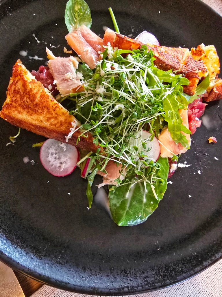 Wenn du hier isst, spürst du: Das ist keine Küche, die beeindrucken will. Das ist eine Küche, die kann. Und genau das macht sie so besonders. Vielleicht ist das der Grund, warum es kaum einen Tisch gibt, an dem etwas auf dem Teller liegen bleibt. Das ist vermutlich das ehrlichste Kompliment, das man einer Küche machen kann… Ein besonderes Konzept ist „Kreuz & Quer“: Das ganze Jahr über, jeden Freitag und Sonntagabend, kannst du dir dein Menü wie aus einem Baukastensystem selbst zusammenstellen. Genau so, wie du Lust hast.