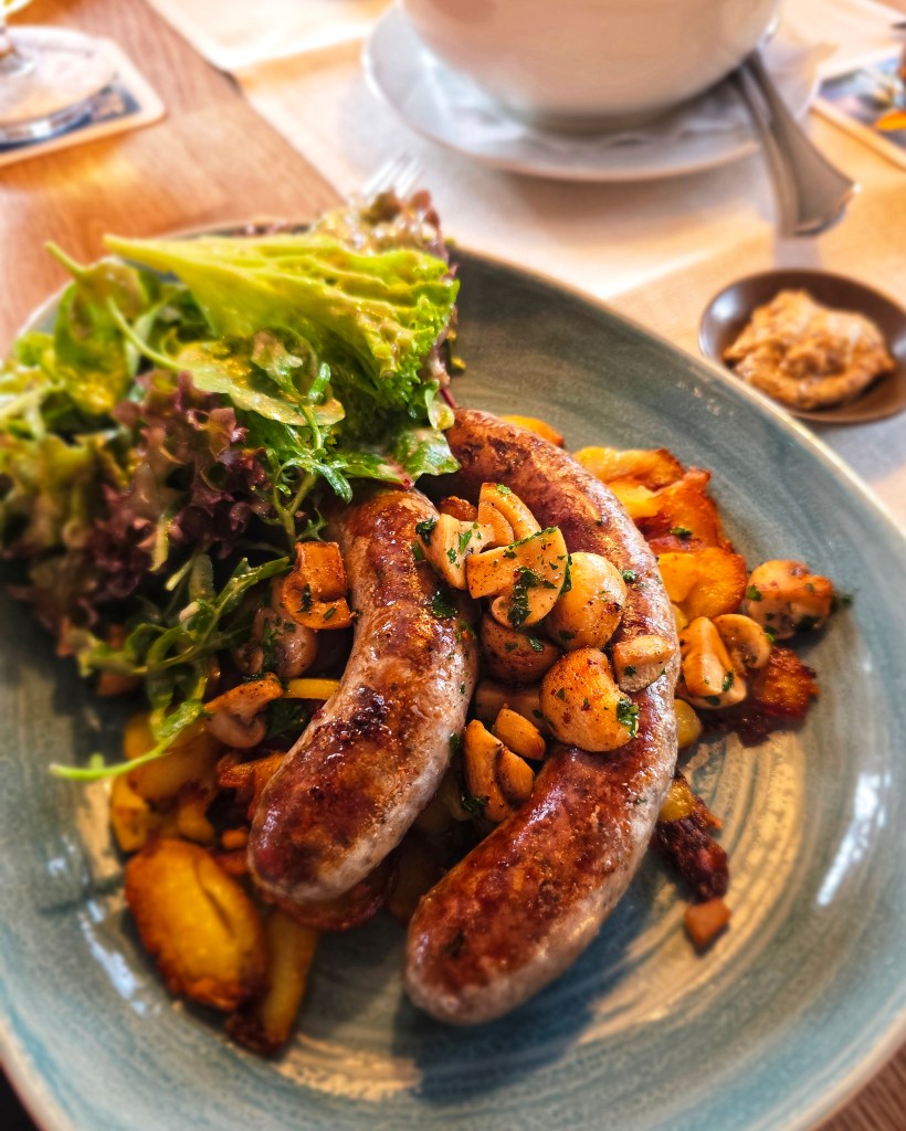 Wenn du hier isst, schmeckst du eines sofort: Hier wird gekocht. Richtig gekocht. Das „Suerlänner Eck“ hat sich ganz klar auf die Fahnen geschrieben, alles selbst herzustellen. Keine Tiefkühlware, keine Tütchen. Beilagen sind im „Suerlänner Eck“ keine Nebensache, kein stiller Begleiter am Tellerrand. Sie sind ein fester Bestandteil des Gerichts – mit genauso viel Aufmerksamkeit und Respekt zubereitet wie das Hauptprodukt selbst. Die Kartoffelbeilagen werden frisch verarbeitet, Schupfnudeln und Spätzle von Hand gemacht, genauso wie andere Nudeln. Teig wird hier nicht aufgerissen, sondern angesetzt, geknetet, portioniert. Du schmeckst den Unterschied sofort: Mehr Biss, mehr Charakter, mehr Ehrlichkeit.
