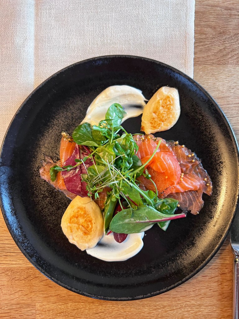 Auch beim Fisch wird nichts dem Zufall überlassen. Der Lachs wird im Haus selbst gebeizt, sorgfältig vorbereitet, fein abgeschmeckt. Verarbeitet werden ausschließlich frische Zutaten, ohne Kompromisse. Das bedeutet mehr Arbeit – aber genau diese Arbeit ist hier gewollt. Weil Qualität nicht aus Abkürzungen entsteht, sondern aus Zeit.