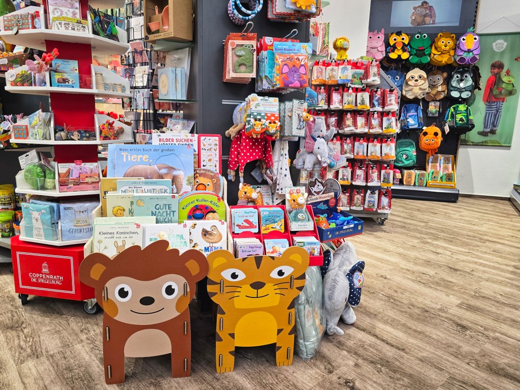 Ja, hier gibt es auch etwas für die Großen. Wenn du dich einmal umschaust, merkst du schnell: Das ist kein reiner „Ranzenladen“. Zwischen liebevoll ausgewählten Geschenkartikeln, kleinen Spielideen und feinen Papeterie-Produkten findest du auch Dinge, die du dir selbst gern mitnimmst. Bücher können bestellt werden – ein echter Pluspunkt, seit die Plettenberger Buchhandlung im letzten Jahr geschlossen hat. Außerdem stehen Produkte vom „Coppenrath Verlag“ in den Regalen, charmante Kleinigkeiten zum Verschenken und natürlich Figuren für die „Toniebox“, die in vielen Kinderzimmern längst Kult sind.