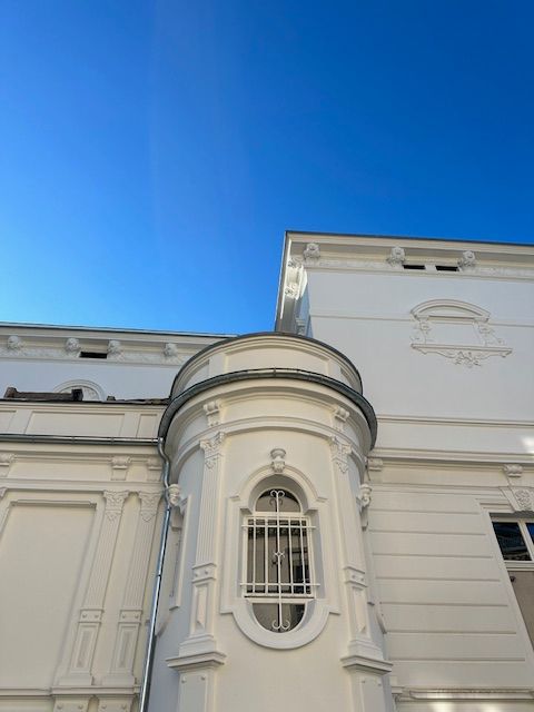 Und nun nehme ich dich aus der Gegenwart mal mit durch die Reise der vergangenen fünf Jahre: Der Stuck war damals übermalt, teilweise abgeschlagen. Zwei Stuckateure arbeiteten zwei Jahre lang daran, ihn zu restaurieren. Der Fortschritt war kaum sichtbar, manchmal nur meterweise pro Woche.